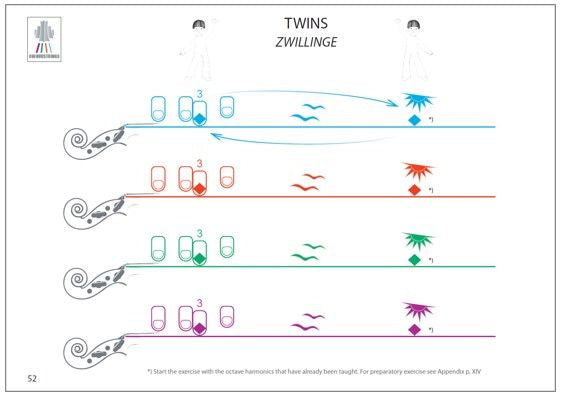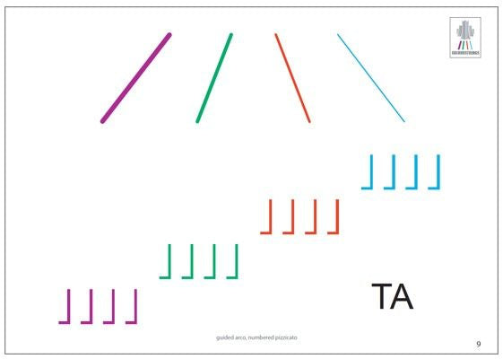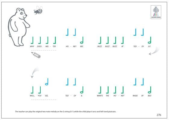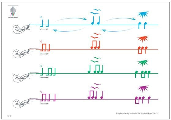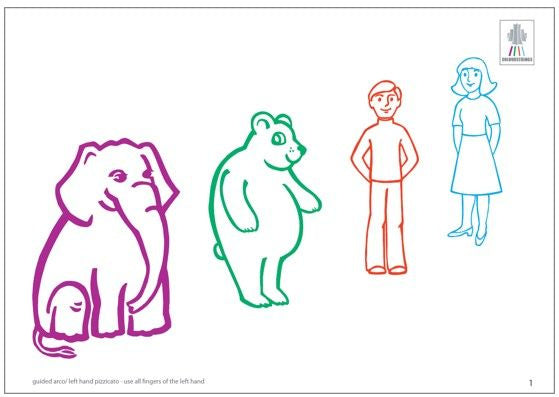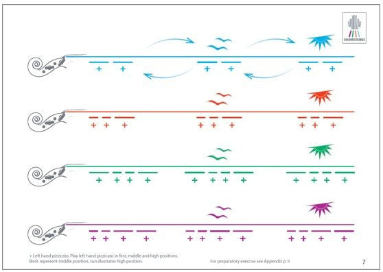 Founded on the principles of Zoltán Kodály, Colourstrings developes the capacity for internal listening: the child learns to visualize the notes heard and to aurilize the notes on the page. Colourstrings is the first violin and viola method that makes use of natural harmonics in first position to teach the left hand optimal, relaxed position.