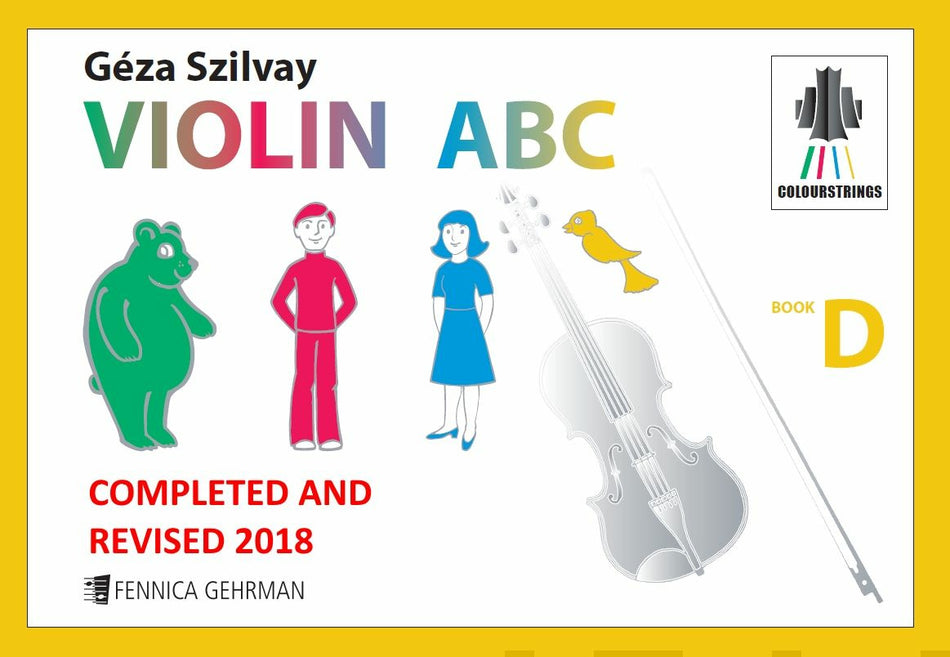 The violin tutors starting from the Book A are designed for children aged from four years. The Colourstrings Violin ABC: Book D continues the use of the five-line stave introduced in the Book C and uses folk songs from 12 different countries. New and mixed finger pattern (e.g., the flattened second finger) and major & minor pentachords as well as major and natural minor melodies are introduced by learning one new thing at a time. An extensive appendix offers 40 pages of exercises in bow division, rests, bouncing bow, arpeggios and chords... Additional materials bring along performing pieces (Sonatini for violin and piano [9790550111028] and Violin Rascals 2 [9790550095571] & Violin Rascals 4 [9790550095717] from the very beginning.