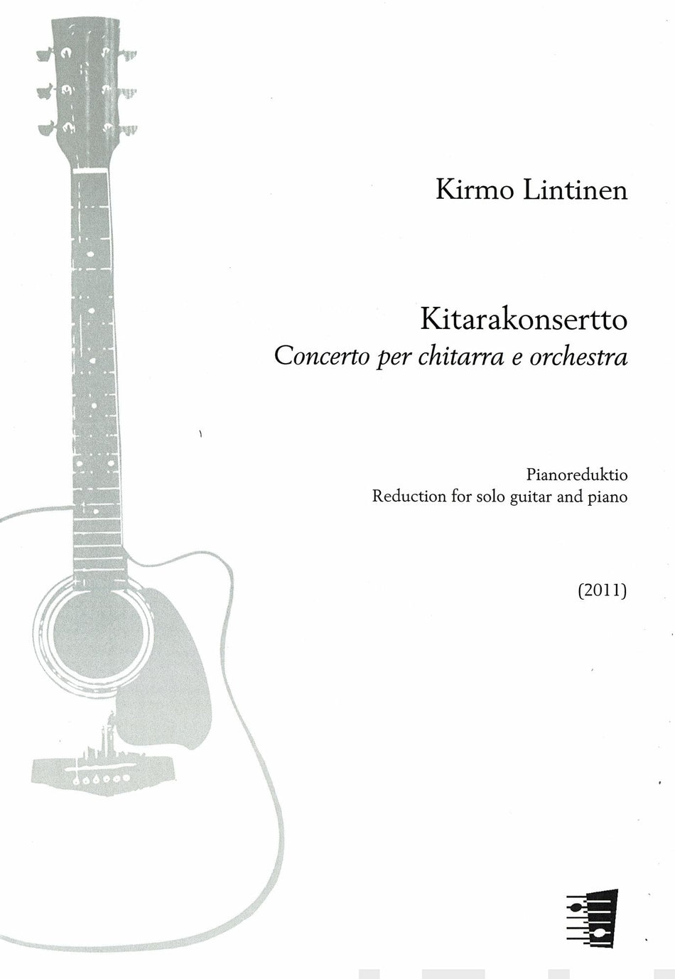 Kirmo Lintinen's Concerto for Guitar is charming music that bubbles on with an unresisting power. The elegant whirls of waltz and dreamy sections lead to a folk-dance-like finale. The piano reduction is prepared by the composer.