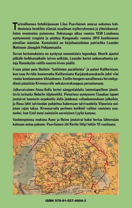 Tarinallinen tietokirja Maailmanmainiot Mattssonit kertoo kahdentoista henkilön elämänvaiheista alkaen 1860-luvun suurista nälkävuosista aina peltojen paketointiin 1980-luvulla. Pohjanmaalta Pietarin ja Bakun kautta Karjalankannakselle päätyneen suvun henkisen perinnön voi kiteyttää neljään sanaa... Lue lisää