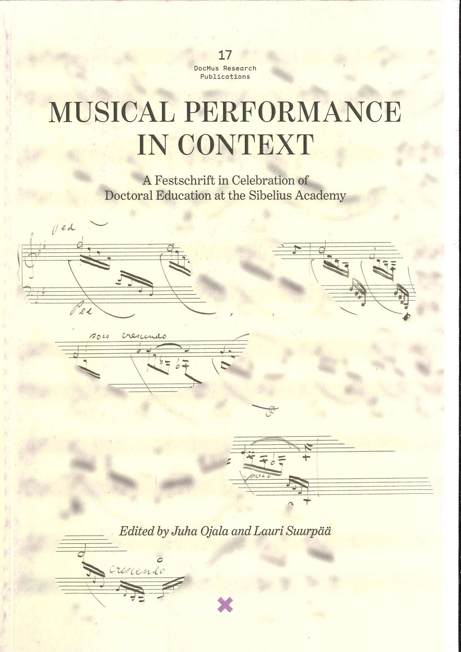 Musical Performance in Context celebrates the 30th anniversary of the rst Doctor of Music graduations in 1990 at the Sibelius Academy of the University of the Arts Helsinki. Wideranging in its orientation, the book consists of ten essays that elucidate areas and topics with which the DocMus Doctoral School of the Faculty of Classical Music has been engaged over the years. All the essays address, in one way or another, issues of musical performance, covering this concept very widely. The authors are current and former faculty members, or scholars and artists who have cooperated with the Sibelius Academy. Complementing the scholarly essays, two introductions and ve reminiscences give background on the early stages of doctoral education at the Sibelius Academy and recall personal experiences over the years.