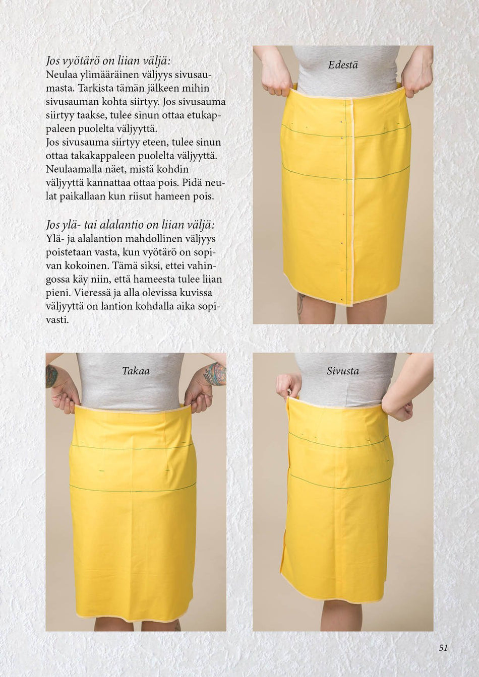 • Avainsanat käsityöohjeet; vaatteet; ompelu; ompelukaavat; ompelutyöt; Ompelu; hameet; ompeluohje; kuosittelu
