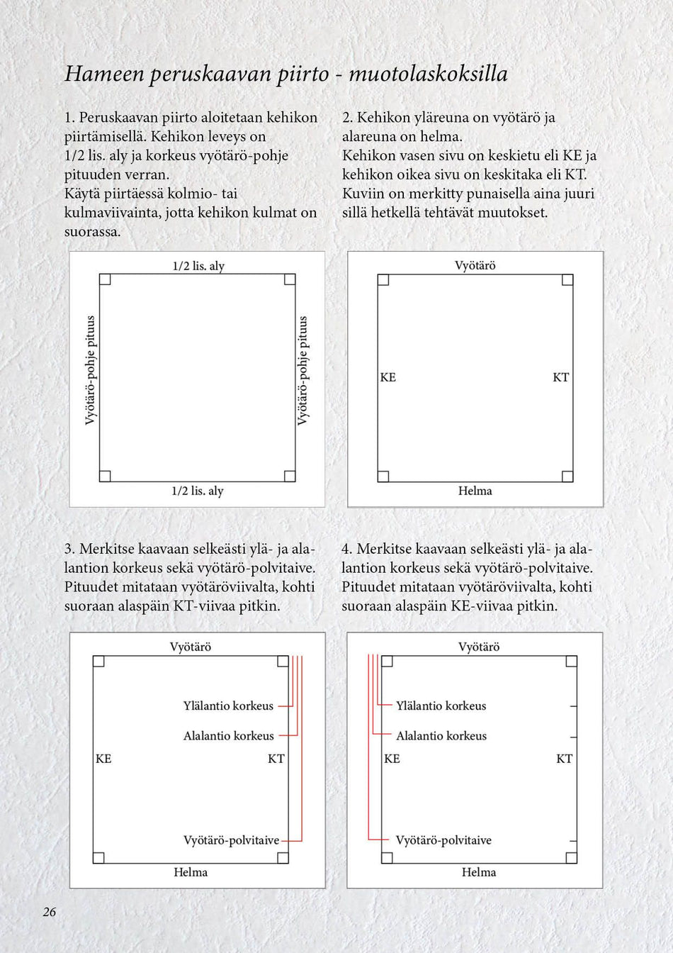 ohjeet mittojen ottoon, kaavan piirtoon ja