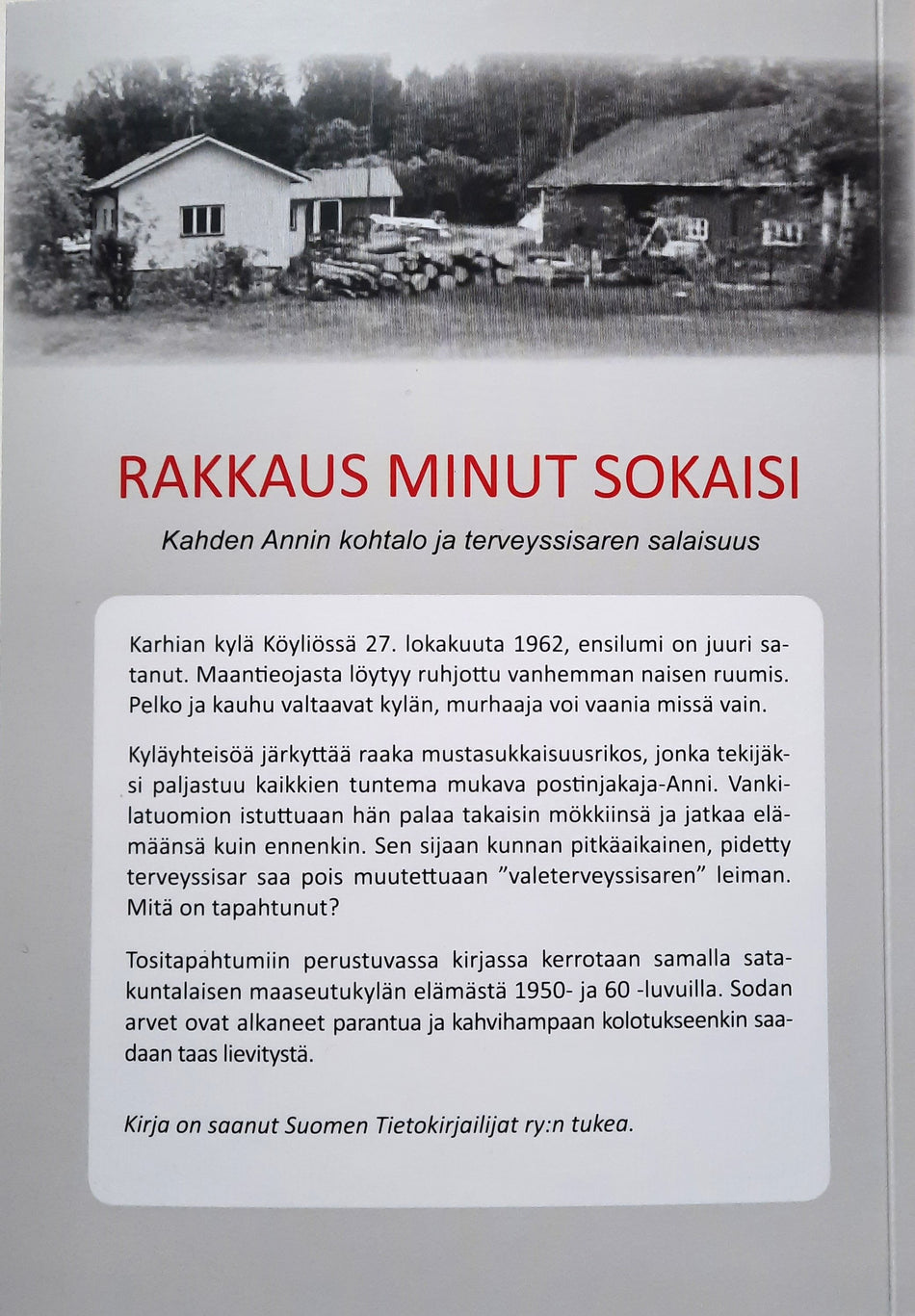 Kirjassa kerrotaan samalla satakuntalaisen maaseutukylän elämästä 1950- ja -60 -luvuilla. Sodan arvet ovat juuri alkaneet parantua ja kahvihampaan kolotukseen saadaan taas lievitystä. Kirja on osa kokonaisuutta, jossa aihetta on käsitelty yhteisötaiteen keinoin kyläläisten kanssa. Kirjan tekijällä on omakohtainen kytkös tapahtumiin.