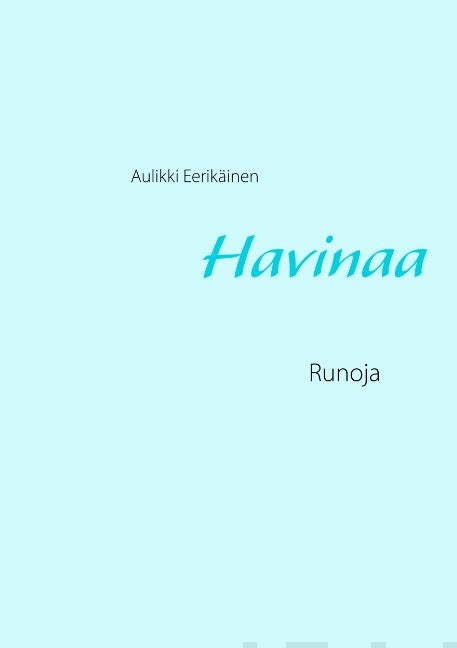 Aulikki Eerikäisen kirjoittama Havinaa-runokirja on syntynyt tarpeesta kirjoittaa ylös ajatuksia runojen muodossa. Runoista ilmenee elämän todellisuus monine muotoineen, iloineen ja suruineen. Kirjan vakavista runoista poiketen joukkoon mahtuu myös "hauskoja tarinoita". Lue lisää