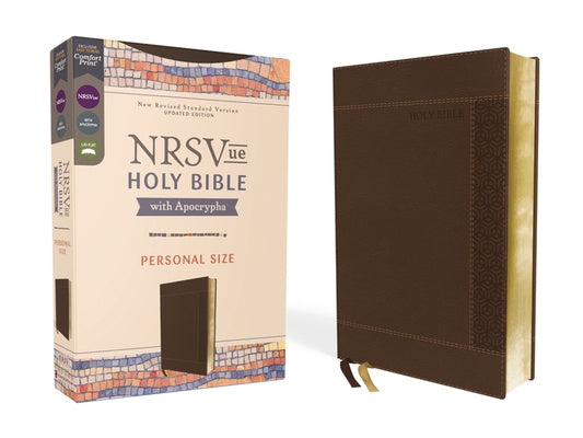 A Beautiful Bible for a Beautiful Faith. This edition of the NRSVue Holy Bible with Apocrypha, Personal Size invites you to explore the depth and beauty of Scripture. It’s durable and durable design make it the ideal Bible to carry with you to work, school, or church. Skillfully crafted for the New Revised Standard Version, Updated Edition (NRSVue) text, Zondervan''s exclusive Comfort Print® typeface provides a smooth reading experience that complements the foremost Bible translation vetted by Protestant, Catholic, Orthodox, Evangelical, and Jewish scholars. Continuing the legacy of the NRSV, the NRSVue aims to faithfully serve the church in personal spiritual formation, in the liturgy, and in the academy. With revisions based on new textual evidence, historical insights, and linguistic precision, this updated edition delivers a translation of Scripture based on meticulous care for accuracy and readability.The Apocrypha is placed between Old and New Testaments, a nearly four-hundred-year-old tradition originating with the 1534 German Luther Bible. This practice separates the Apocrypha from the 66-book canon while allowing readers to benefit from its spiritual wisdom, exemplary piety, and historical insight. Features:The text of the New Revised Standard Version, Updated Edition, vetted by an ecumenical group of Christian scholarsApocrypha placed between Old and New TestamentsElegant two-color page design in a double-column formatPresentation pageTwo satin ribbon markersExquisite and durable Leathersoft coverSmyth-sewn binding lies flat when openExclusive Zondervan NRSVue Comfort Print typefacePrint Size: 8.5-point