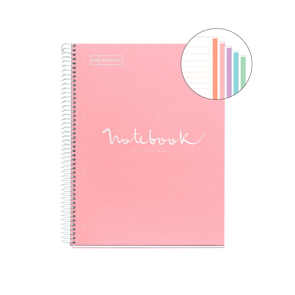 Kierremuistikirja A4/120 indeksillä vaaleanpunainen Miquel Rius
