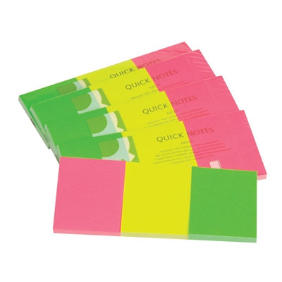 Q-Connectin Quick Notes -viestilaput kiinnittyvät voimakkaasti useimmille pinnoille. Laput on valmistettu FSC-sertifioidusta puusta. 3 x 50, 50 lappua lehtiössä. Koko 38 x 50mm. Värit neonvihreä, -keltainen ja -pinkki. Lue lisää