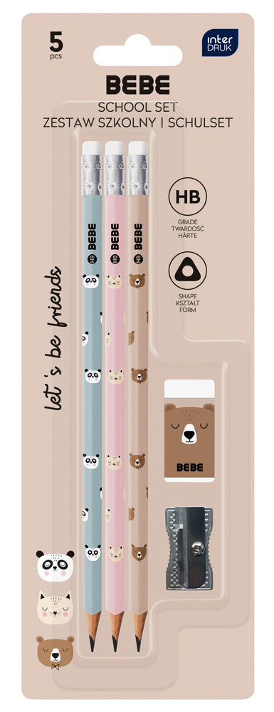 Bebe Friends lyijykynäsetissä on 3 värikästä lyijykynää, metalliteroitin ja kumi. Hauska ja käytännöllinen setti lapsille, täydellinen kouluun tai askarteluun! Lue lisää