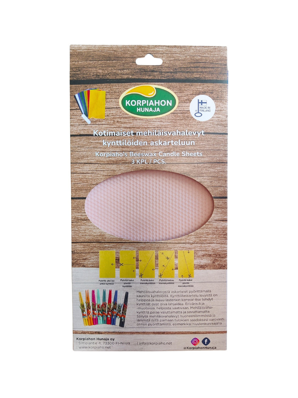Kotimaiset mehiläisvahalevyt kynttilöiden askarteluun. 3kpl+ sydänlanka. Lue lisää