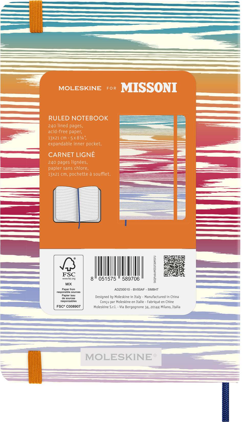 Large-kokoinen muistikirja viivallisella FSC-paperilla.Upea Missoni-kangaspäällyste.Tehty Italiassa. Lue lisää