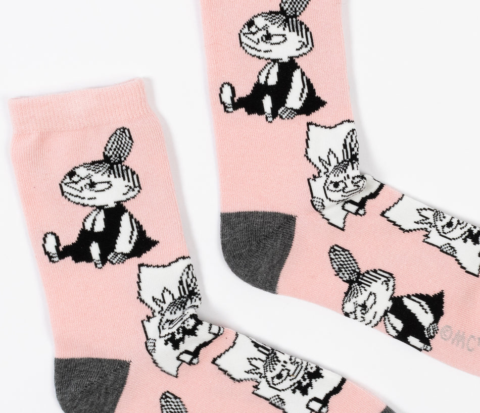 Moomin by Nordicbuddies Pikku Myy naisten sukat. Sukat ovat väriltään tummanharmaa ja vaaleanpunainen. Materiaali on 75% puuvillaa, 23% polyesteria ja 2% elastaania. Sukat ovat yhtä kokoa; EU 36-42. Lue lisää