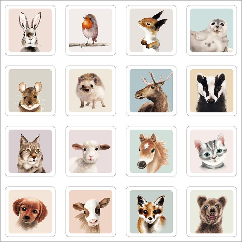 Henna Adelin ihanat kuvitukset menevät suoraan sydämeen! Tämän muistipelin söpöyden ääressä vierähtää hetki jos toinenkin. Aivan oivallinen lahjaidea kevään rientoihin!