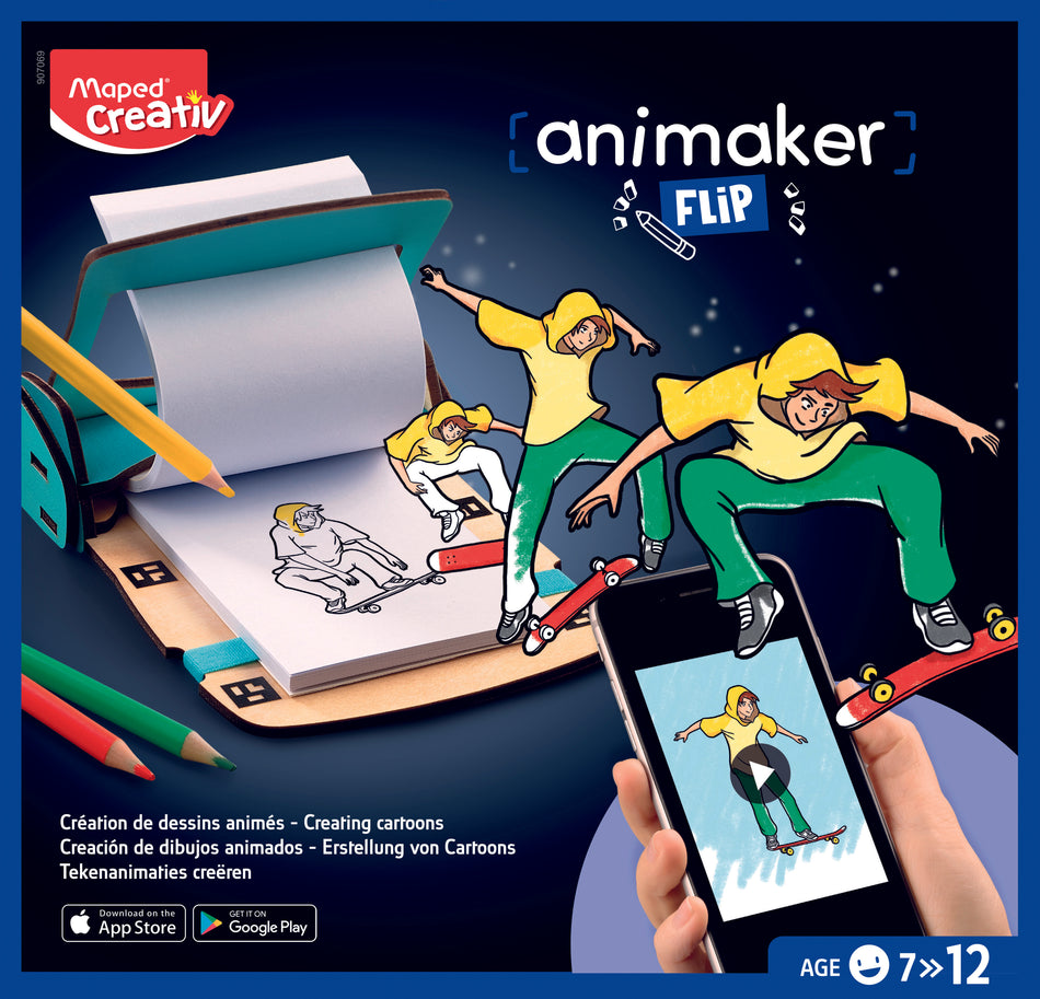 Maped Animaker Flip-pakkaus sisältää tarvittavat materiaalit lyhyiden animaatio-klippien tekemiseen. Lataa ilmainen Animaker -appi sovelluskaupasta! Lue lisää