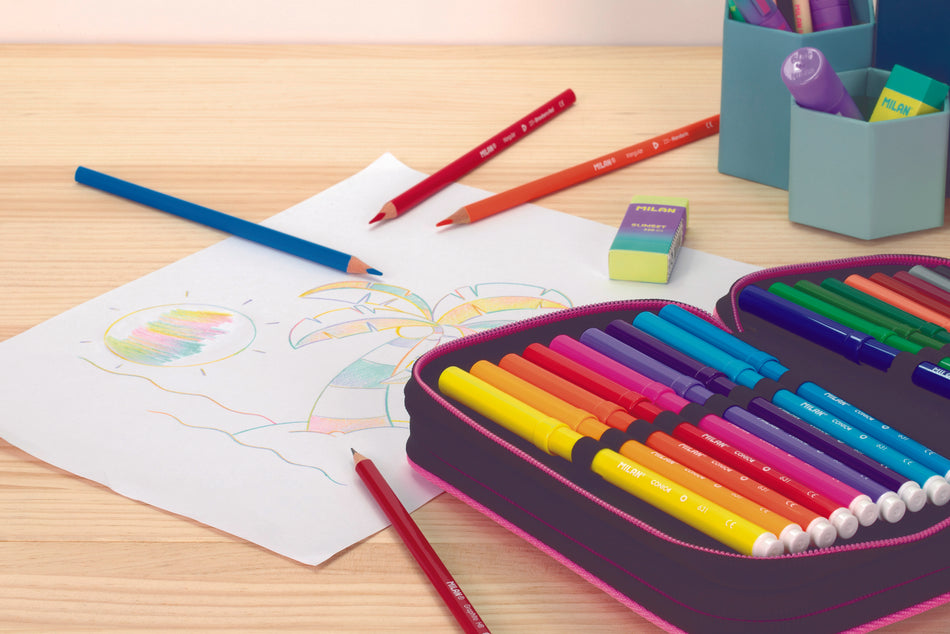 Penaali Milan Sunset pinkki on täytetty kaksikerroksinen koulupenaali, joka pitää koulutarvikkeet hyvässä järjestyksessä ja helposti saatavilla Lue lisää