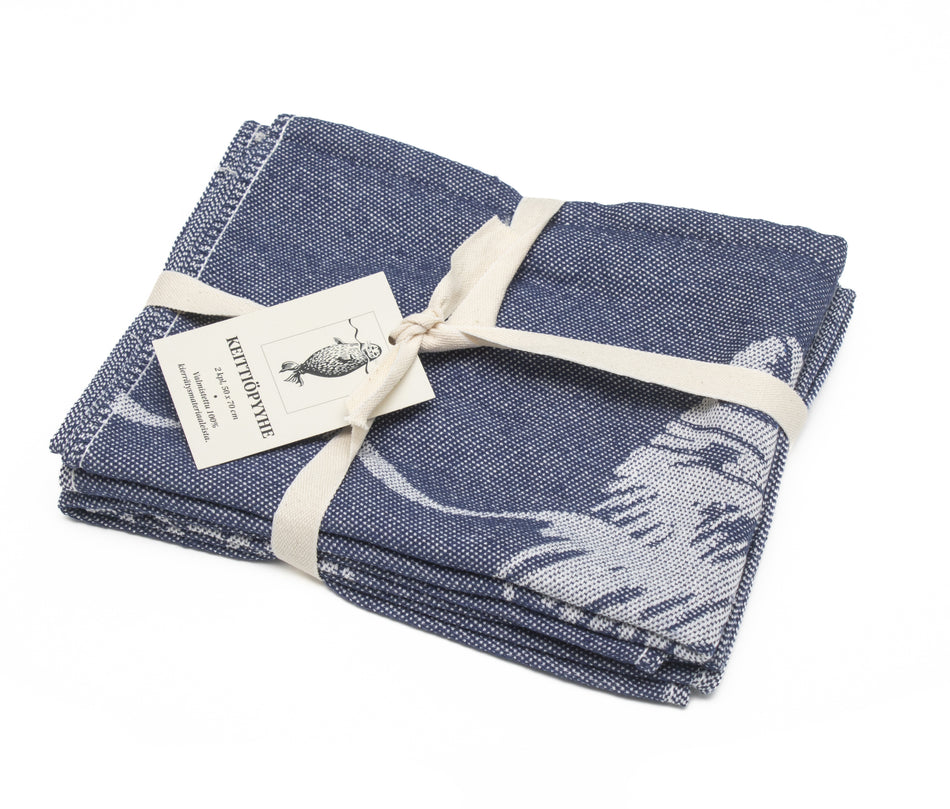 Kierrätysmateriaaleista valmistetut keittiöpyyhkeet klassisella Erik Bruunin suunnittelemalla norppatunnuksella. Kahden pyyhkeen setti. Lue lisää
