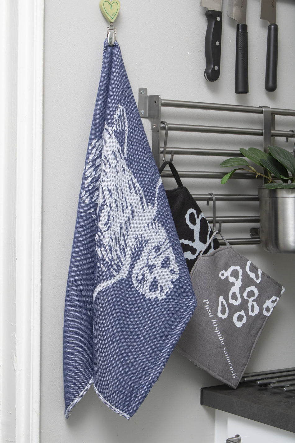 Keittiöpyyhkeet Suomen Luonnonsuojeluliitto Retrologo mustikansininen