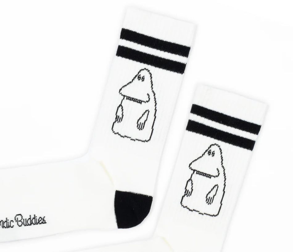 Moomin by Nordicbuddies Mörkö Retro miesten sukat. Sukat ovat väriltään valkoinen ja musta. Materiaali on 75% puuvillaa, 23% polyesteria ja 2% elastaania. Sukat ovat yhtä kokoa; EU 40-45. Lue lisää