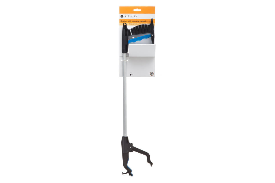 Vitility Noukkija on kätevä apuväline, joka helpottaa esineiden nostamista, olivat ne sitten liian alhaalla tai liian korkealla. Tämä noukkija on erityisen hyödyllinen pienten ja kevyiden esineiden, kuten kaukosäätimien ja aikakauslehtien, nostamisessa. Sen avulla voit saavuttaa esineet ilman taivutusta tai venytystä. Lisäksi noukkijassa on magneetti, joka mahdollistaa esimerkiksi avainten kätevän nostamisen lattialta. Pituudeltaan se on 61 cm, joten se on sopivan pitkä monenlaisiin tarpeisiin.