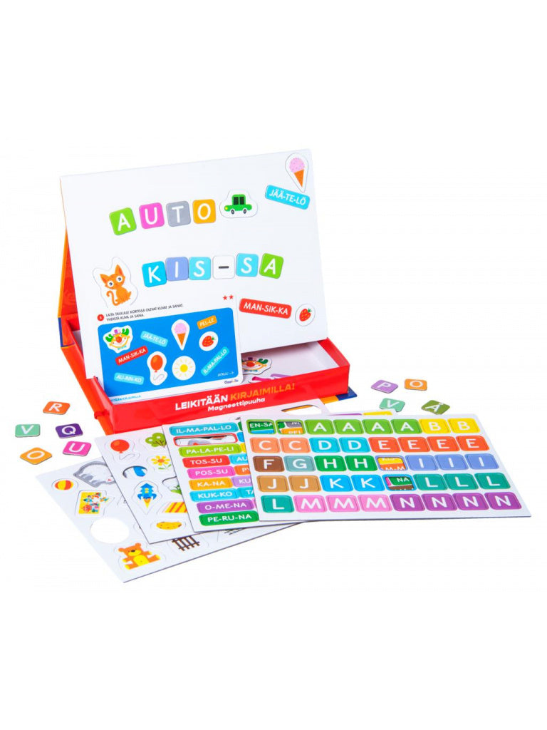 Leikitään kirjaimilla! Iloinen magneettipuuha johdattaa kirjainten ja sanojen maailmaan. Monipuolisissa tehtävissä yhdistetään riimipareja, tunnistetaan äänteitä ja kuljetaan kirjainreittejä. Taitojen kartuttua muodostetaan kokonaisia sanoja ja ratkotaan puuttuvia kirjaimia ristikoista. Leikkiä v... Lue lisää
