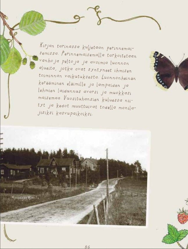 • Avainsanat historia; tietokirja; lastenkirja; kasvit; paikallishistoria; nuortenkirja; maisema; luonnon monimuotoisuus; biodiversiteetti; ympäristökasvatus; kasvio; vanhat valokuvat; kulttuurimaisema; perinnemaisema; mysteeriromaani; keto; ennallistaminen; niitty; herbaario; historiatietokirja; kallioketo; kulttuuriperintökasvatus; laidunnus; lajirikkaus; luontotietokirja