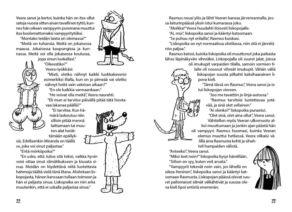 Linja-autoon noustuaan Rasmus havaitsee, että kaikki ei ole ihan kunnossa. Vieressä istuu outo poika, ja lisää kummallisia tyttöjä ja poikia Rasmus tapaa leirikeskuksessa. Yksi oudoista on Veera, joka paljastaa olevansa vampyyri.