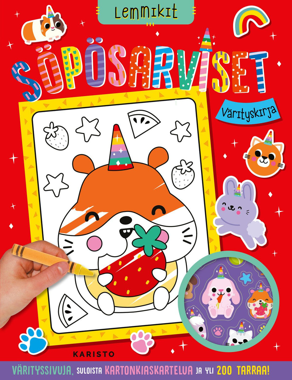 - Alanimike Värityssivuja, suloista kartonkiaskartelua ja yli 200 tarraa!