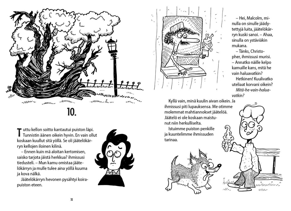 • Thema-luokitus Lasten ja nuorten kaunokirjallisuus: rikokset, mysteerit ja dekkarit; Lasten ja nuorten kaunokirjallisuus: luonto- ja eläintarinat; Lasten ja nuorten kaunokirjallisuus: huumori