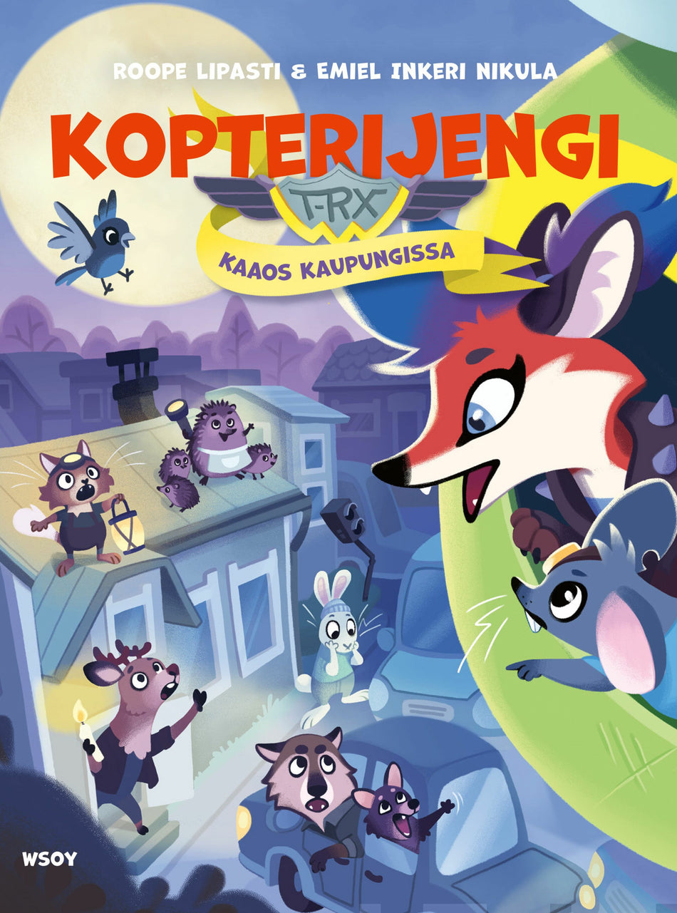 Kopterijengin kotikaupungissa voimalaitos ei toimi niin kuin pitäisi. Kun pelastajat tutkivat tilannetta, selviää, että oravaperhe on tehnyt pesänsä voimalan uumeniin. Mutta voi: pelastustehtävä menee pieleen! Kopterijengi saa aikaiseksi hirmuisen oikosulun, ja koko kaupunki pimenee. Toimimasta lakkaavat niin jäätelökauppiaan pakastin kuin kaikki liikennevalot, ja edessä on täysi kaaos. Tästä pelastustehtävästä tulee paitsi hurjan vaarallinen, myös pilkkopimeä! Kopterijengi T-RX on kuvakirjasarja täynnä huumoria, vauhtia ja vaaratilanteita, ja se sopii kaikille seikkailijoille sukupuolesta riippumatta.