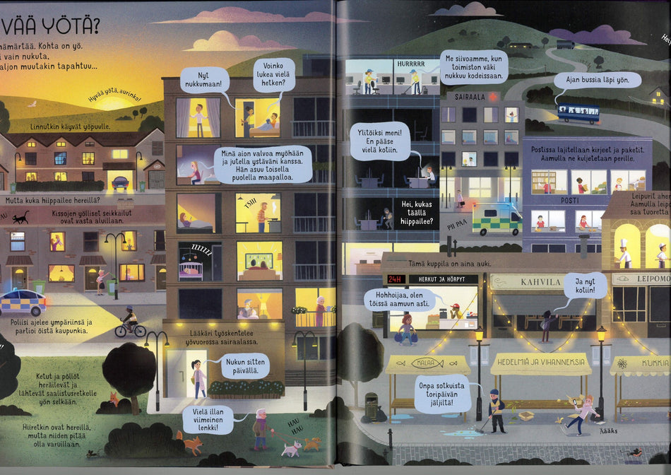 - Avainsanat tietokirja; luonto; ammatit; yö; vuorokaudenajat