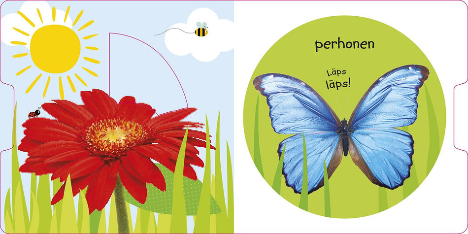 Kirjassa on useampia pyöritettäviä kiekkoja, joista voi seurata eri eläinten kasvua. Kirjasta oppii hauskalla tavalla elämän kiertokulkua. Lue lisää