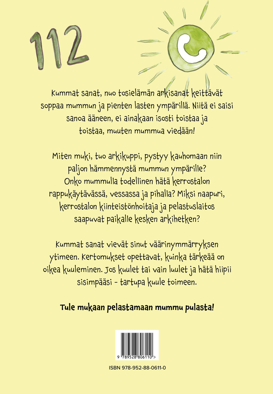 - Avainsanat Huumori; isovanhemmat; Kuvakirjat; Lapset; Lastenkirjallisuus; väärinkäsitykset; hätäilmoitukset; Kerrostalot