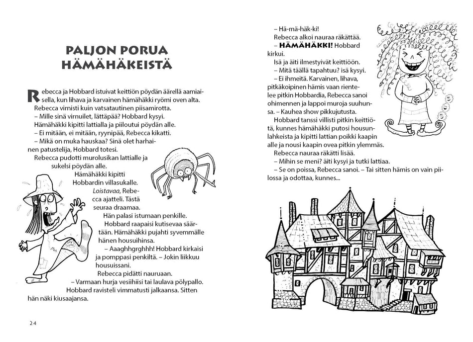 Hän marssittaa koululuokkaan karvajalkaiset ystävänsä RHHSH:n eli Rebeccan Hyvin Salaisen Hämähäkkiarmeijan.