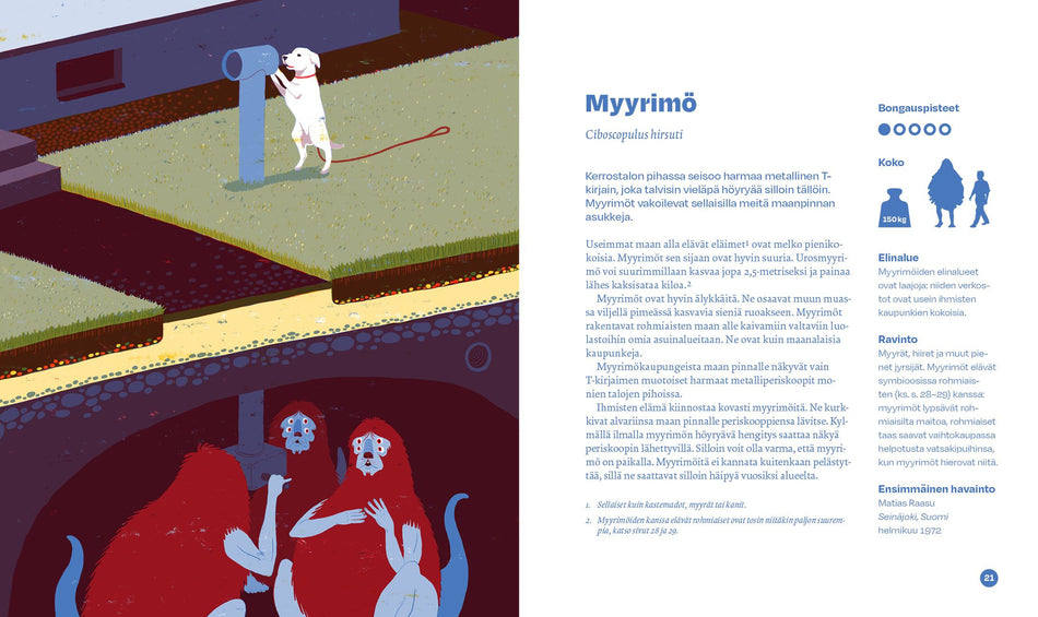 Ämminkäisiä ei voi nähdä, joten otusbongaajan on kiinnitettävä huomiota tavallisilta vaikuttaviin merkkeihin kaupungin kaduilla, taloissa ja rakennustyömailla. Tämä kirja opettaa katsomaan uteliaasti ympärilleen ja huomaamaan sen, mikä muilta saattaisi jäädä huomaamatta.
