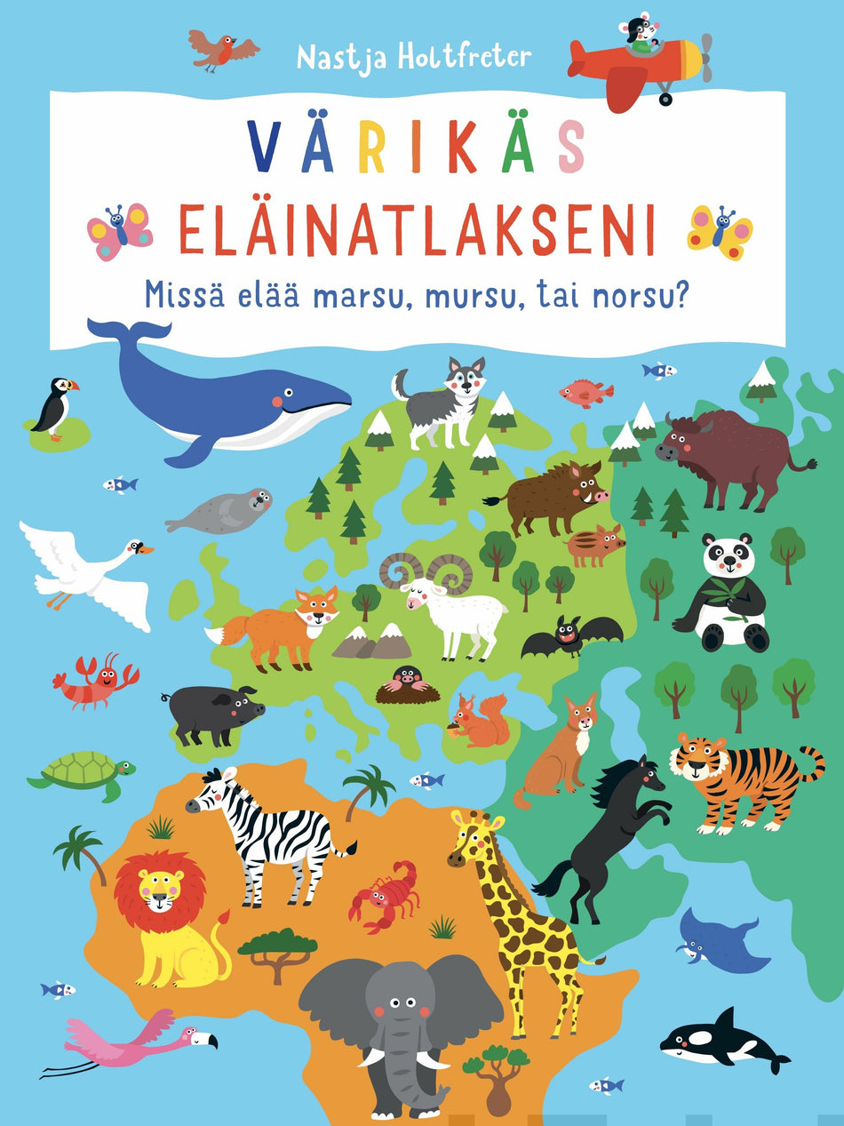 Aavikkoketusta vuoheen ja vyötiäisestä gebardiin! Tässä värikylläisessä ja hilpeässä kirjassa tutustumme maailman eläimiin ja maanosiin. Pieni hiiri kuljettaa meidät maailman ympäri tapaamaan eri eläimiä. Jokaisella aukeamalla on pari kysymystä aukeaman kuvista, joihin pikku lukija saa etsiä vast... Lue lisää