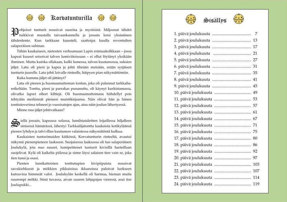 Sisältää 24 kauniisti kuvitettua lukua. Yhteensä peräti 124 sivua täynnä jouluntaikaa.