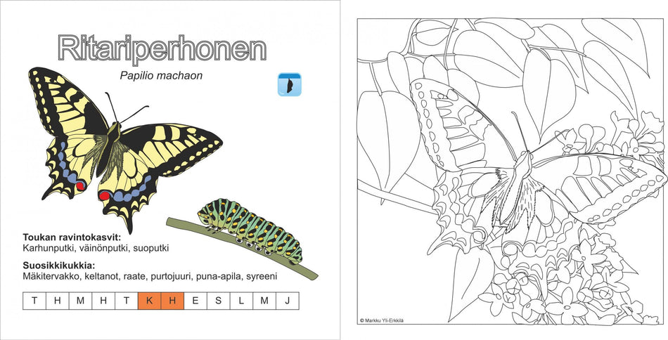 - Avainsanat biologia; värityskirjat; luonto; värittäminen; hyönteiset; apolloperhonen; luonto-oppaat (teokset); päiväperhoset; luonto-opetus; perhonen; nokkosperhonen; lajinmääritys; kaaliperhoset; perhosharrastus; neitoperhonen; ritariperhoset; perhoset
