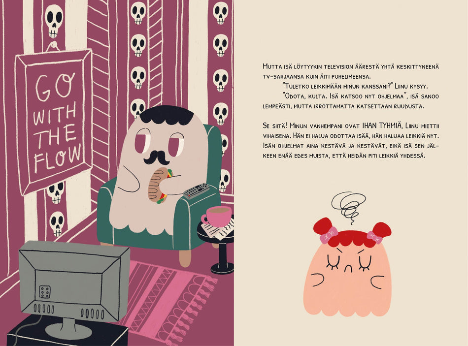 - Avainsanat lastenkirja; lastenkirjallisuus; kuvakirja; tunteet; lastenkirjat; kuvitus; kummitus; Susanna Olkinuora