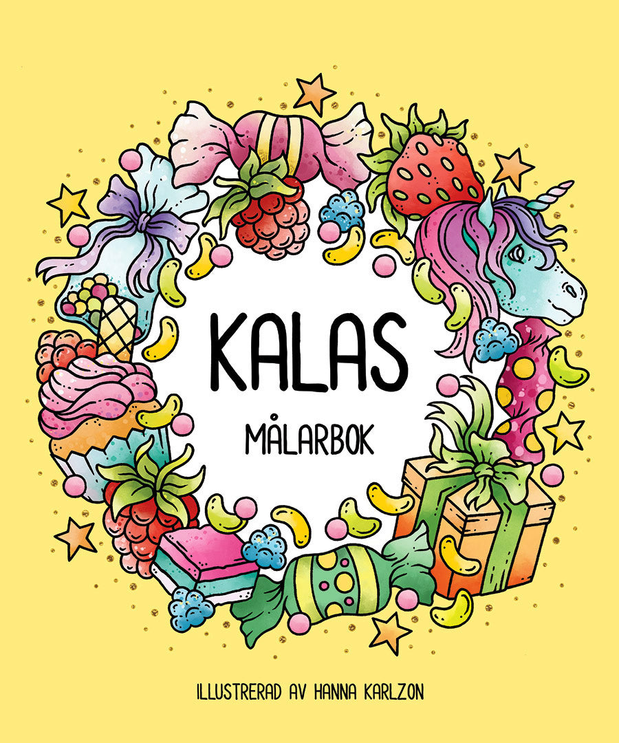 I denna målarbok är du bjuden på ett färgsprakande kalas med massor av presenter, godis, musik och skratt.