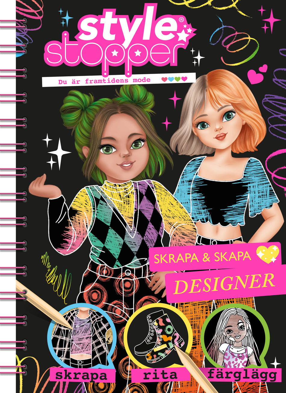 DU är framtidens mode!Gör ett avtryck i modevärlden och skrapa fram 12 otroliga stilar. Upptäck poppiga neonoutfits och skapa skimrande regnbågsmönster medan du följer dina designerdrömmar. Använd den medföljande skissboken som inspiration och låt kreativiteten flöda medan du skapar!Var modig, va... Lue lisää