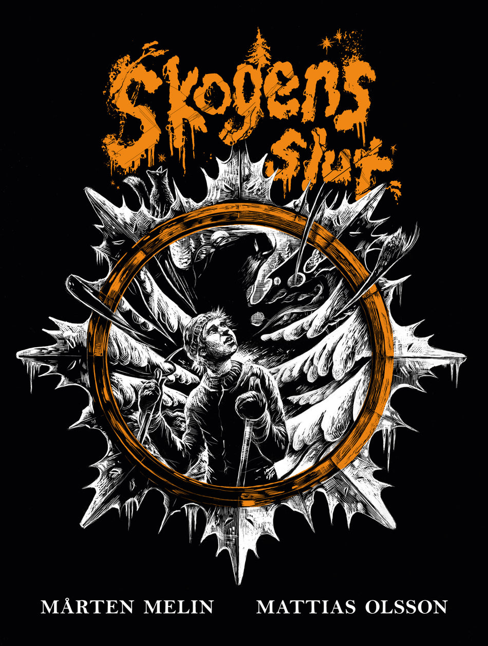 När Noahs pappa går över gränsen orkar Noah inte vara hemma längre utan drar ut i skidspåret. Men så blåser det upp till storm, och skidspårets alla lampor slocknar. Plötsligt verkar det finnas något som rör sig därute i skogens mörker. Eller är det själva mörkret som har fått liv?Skogens slut är den helt fristående tredje delen i Mårten Melin och Mattias Olssons genomillustrerade skräckserie för mellanåldern, som började med Husets hjärta och Gravens gåta. Mårten Melins rappa och gastkramande texter förhöjs ytterligare av Mattias Olssons dramatiska bilder, och skapar spökhistorier läsaren sent kommer glömma!