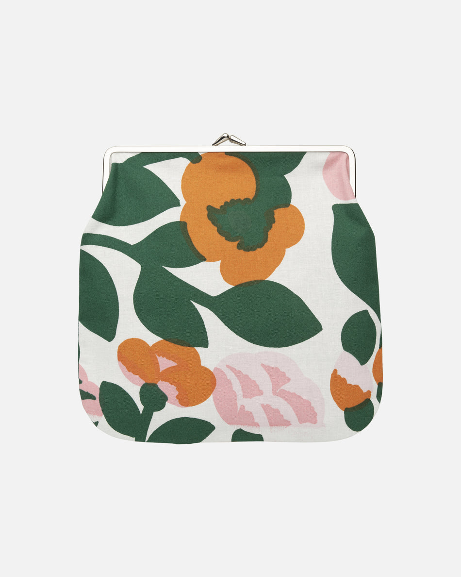 Iso kukkaro on valmistettu Pieni Green green -kuosisesta puuvillasta, joka on painettu Helsingissä. Erittäin tilavassa kukkarossa on metallinen kehys, joka on helppo napsauttaa auki ja kiinni. Lue lisää