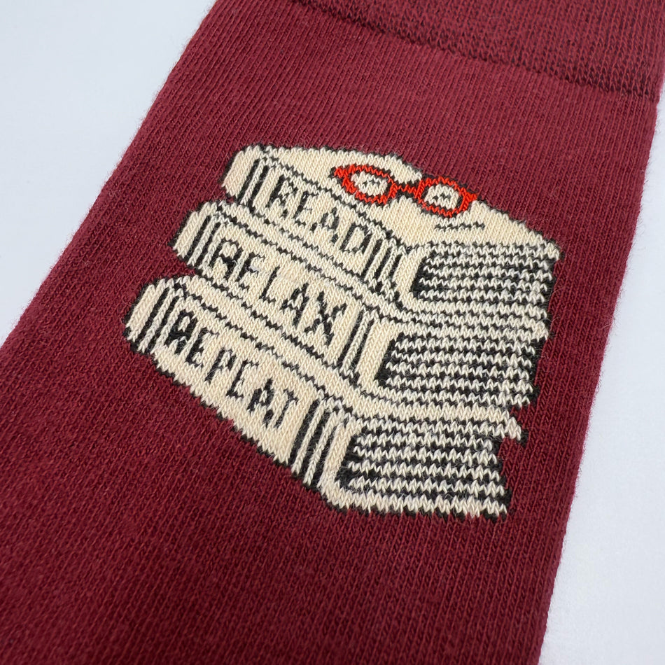 Sukat The Book Club 41-46 Read Relax Repeat, viininpunainen