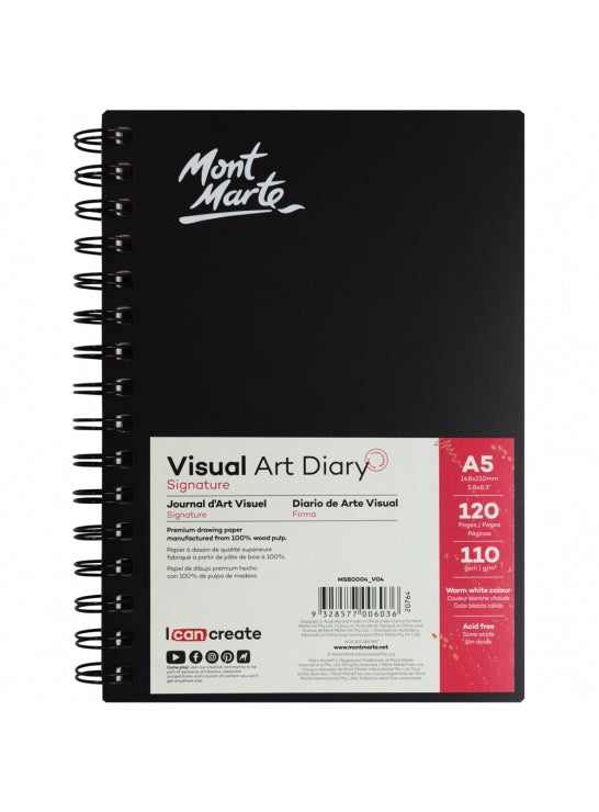Luonnoskirja A5/120 sivua kierre Visual Art Mont Marte