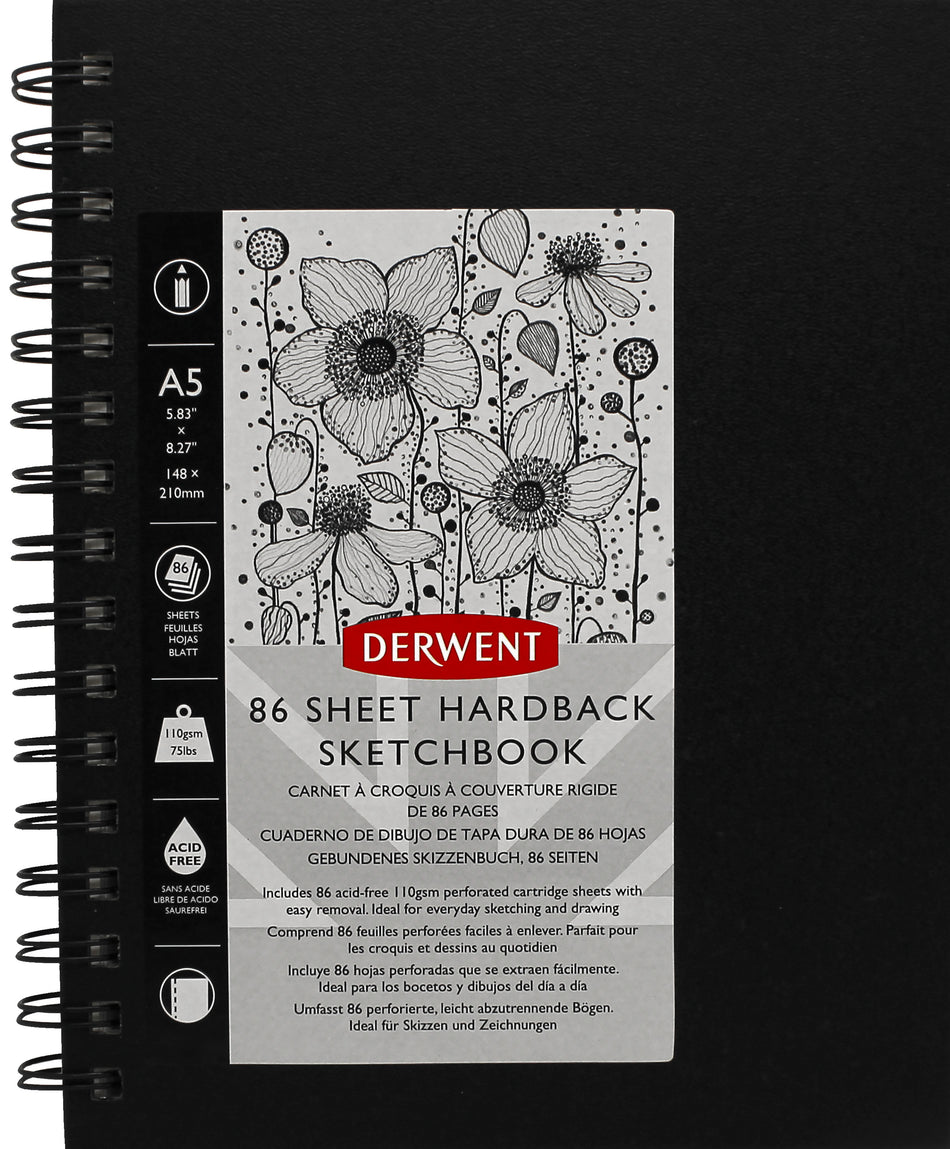 Luonnoskirja A5/86 110g iso kierre Derwent