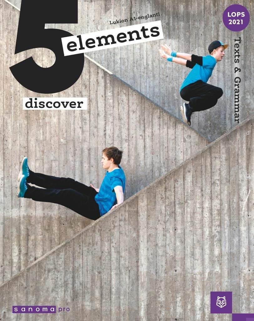 Elements 5 kattaa lukion A1-englannin viidennen moduulin sisällön. Oppimateriaalin teemoihin kuuluu erilaiset tulevaisuudenvisiot, kestävää tulevaisuutta rakentavat innovaatiot ja lähdekriittisyys. Tekstit ovat tekstityypeiltään monipuolisia.