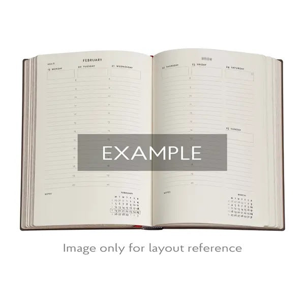 Paperblanksin viikkopäivyrissä on 18 kk alkaen heinäkuusta 2025 jatkuen joulukuulle 2026. Kalenterinäkymässä on yksi viikko aukeamalla ja päivät pystysuunnassa, jolloin muistiinpanoille jää hyvin tilaa. Kalenteri on englanninkielinen. Käytännöllisyyttä lisää kaksi lukunauhaa ja säilytystasku. Lue lisää