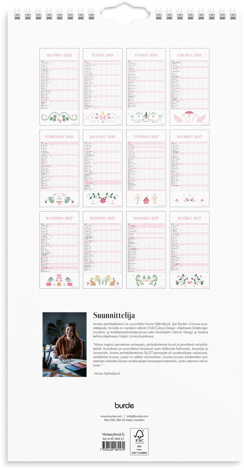 Perhekalenteri Annie 2026-2027 (lukuvuosikalenteri)