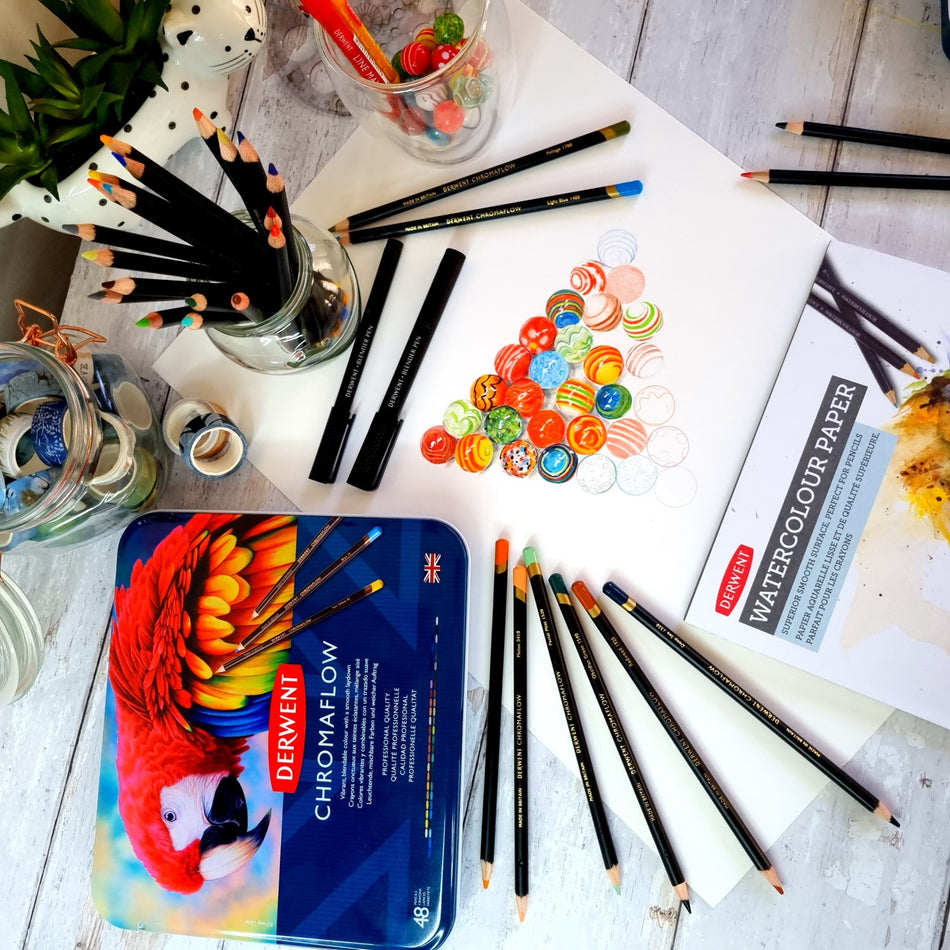 Laadukkaat Chromaflow-värikynät ovat vahvapigmenttiset, vahapohjaiset värikynät, jotka soveltuvat erinomaisesti kaikenlaisiin kynätekniikoihin. Tasaisen samettinen lopputulos ja eloisat värit varmistavat täydellisen lopputuloksen. 3,5 mm paksuinen värilyijy on vahva ja ominaisuudet tulevat esiin ... Lue lisää
