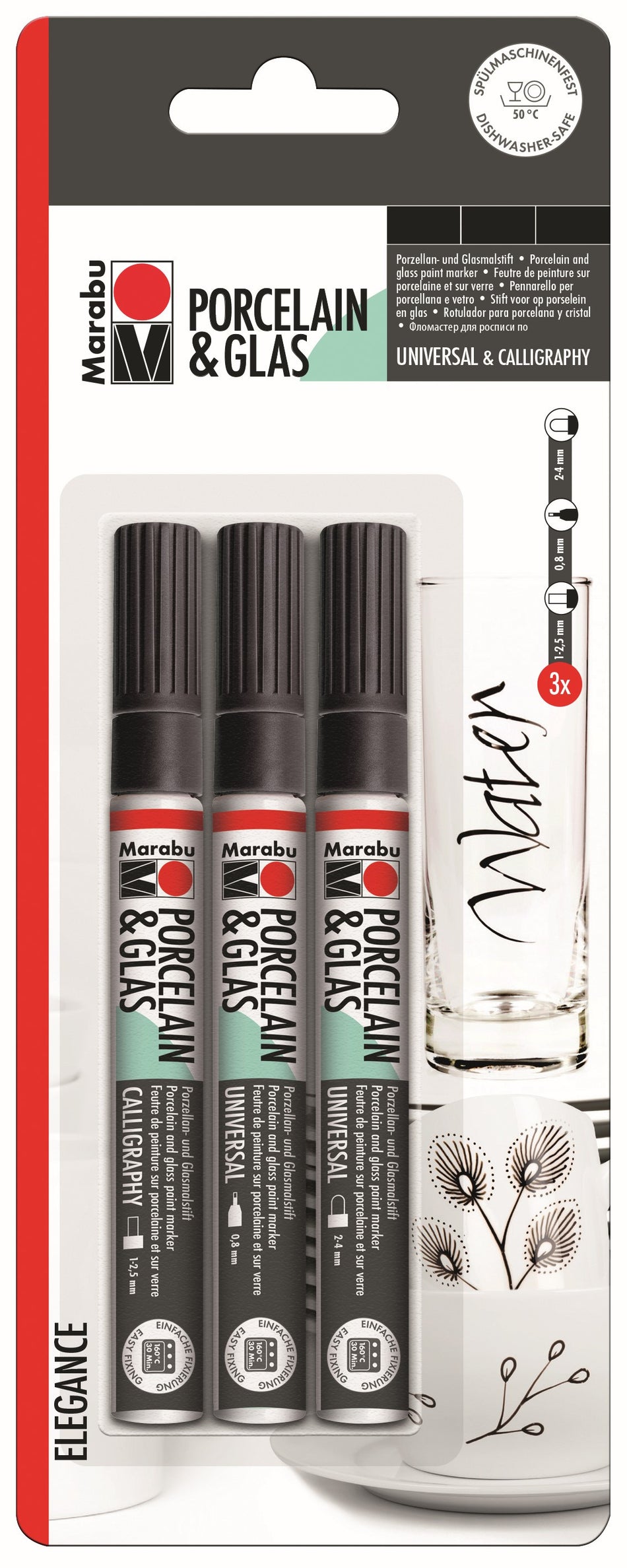 Pakkauksessa kolme eri kokoa. Marabu posliini- ja lasitusseilla taiteilet niin lasiin kuin muihinkin astioihin. Ravista kynää ja painele kärkeä testipintaa vasten kunnes muste juoksee tasaisesti. Astiat ovat konepesun kestäviä (max 50 astetta), kun niitä on kuumennettu uunissa 160 asteessa 30 min... Lue lisää